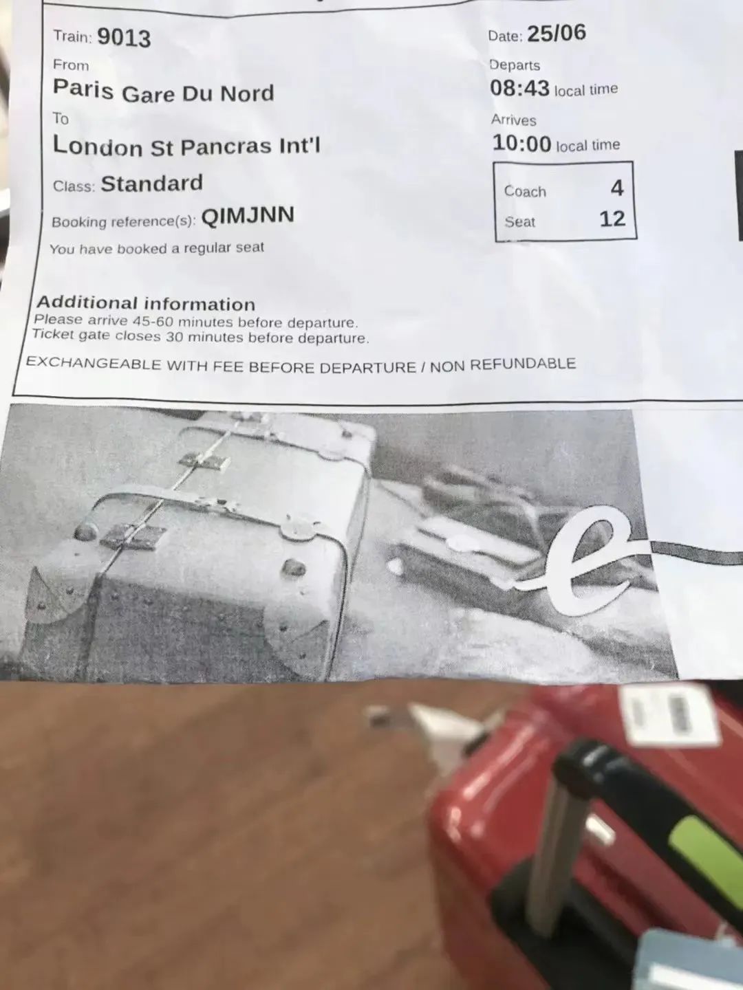 拍摄于:法国乘坐欧洲之星到英国的火车票