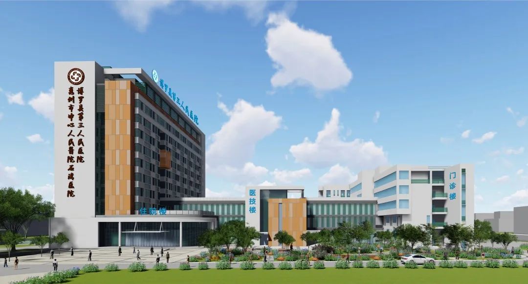 博罗县第三人民医院是博罗县西部区域医疗中心,是市级重点建设医院,也是惠州市卫生与健康「十大工程」项目之一,医院按二级综合医院标准设计建设,总占地面积 28,280 平方米,总建筑面积 34,870.7 平方米,核定床位 240 张,医院总设岗位 315 人。