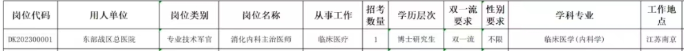 东部战区总医院直招军官岗位计划公布