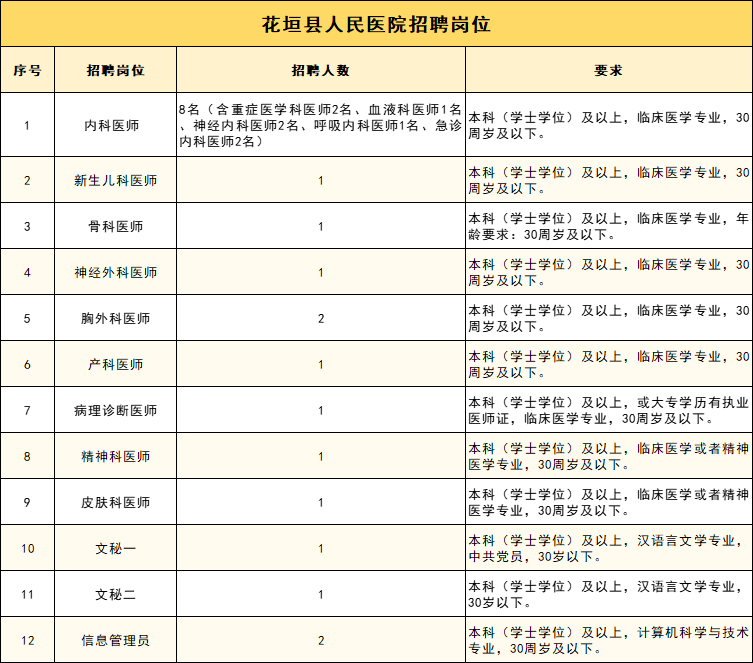 根据临床工作需要,花垣县人民医院面向社会招聘工作人员数名,现将有关事项公告如下: