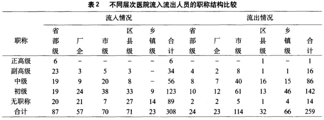 参考文献吴海舰, 刘岩, 曹文华, 等. 济南市不同层次医疗机构卫生科技人才流动情况调查分析 [J]. 卫生软科学,2018,16(1):41-43. DOI:10.3969/j.issn.1003-2800.2018.01.016.