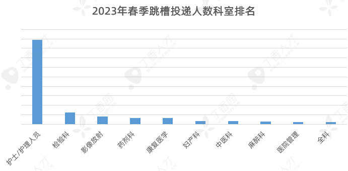 据丁香人才后台数据,今年春招,护理科、检验科、影像放射科、药剂科、康复科、妇产科、中医科、麻醉科、全科的社招投递人数最多。