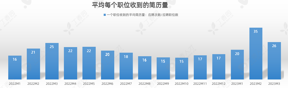 据丁香人才后台显示,今年 2 月平均职位的投递次数达到了新高,平均每个岗位被投递 35 次,在 3 月份数据开始趋于常态。