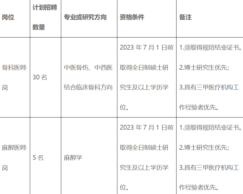 共招聘骨科医师、麻醉医师等 4 个岗位 共 46 人。