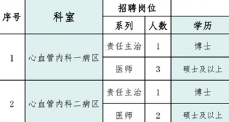 2.博士应聘,医院全年招聘紧缺专业博士及高层次人才,符合条件者可随时与人力资源部联系。