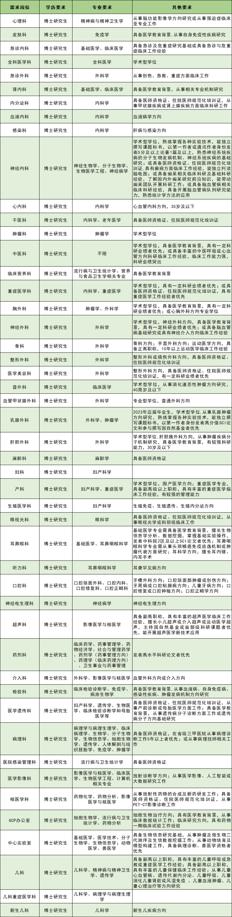 ✦其他配套支持: 医院将竭力解决员工的后顾之忧,医院自办有幼儿园,可直接入园,配偶工作安置和子女就学等事宜面议。
