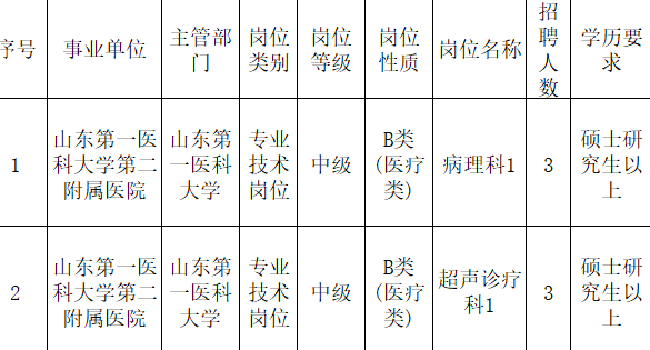 点击查看山东第一医科大学第二附属医院招聘公告(完整版)