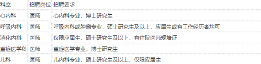 1.优先录用博士、具备三甲医院相关工作经历者,临床 8 年制博士可不受专业限制,应聘各科室。