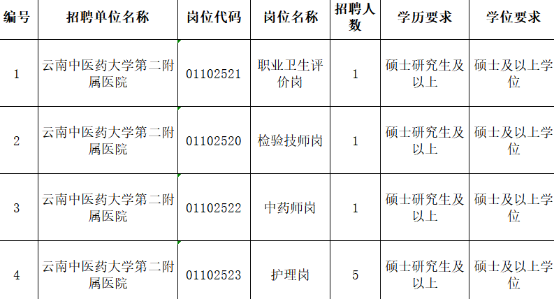 事业编 | 云南中医药大学第二附属医院招聘 45 人