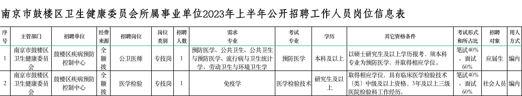 事业编 | 南京市鼓楼区卫健委所属事业单位招聘