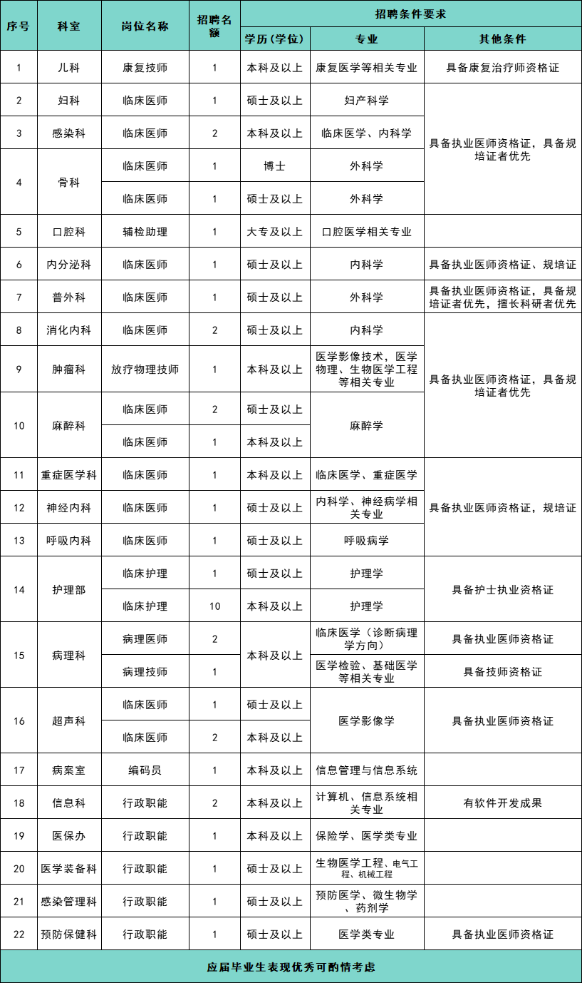 点击岗位名称即可应聘☟☟☟感染科医师骨科医师内分泌科医师普外科医师消化内科医师麻醉科医师神经内科医师呼吸内科医师病理科医师医学装备科