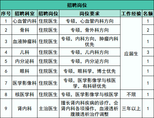 1、硕士及以上学历(第一学历为本科)、临床医学相关专业;