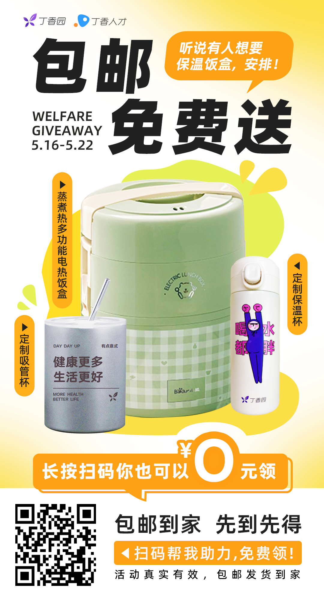 | ✨ 领取步骤 ✨ Step 1 长按图片并识别二维码 你会收到一张 专属海报 Step 2 将你的专属海报 发到朋友圈或微信群 就可以按步骤 免费领取 啦 ✨ 用户评价 ✨ 丁香人才免费送活动真实有效 看看 已经领取 的小伙伴怎么说 ![]() |