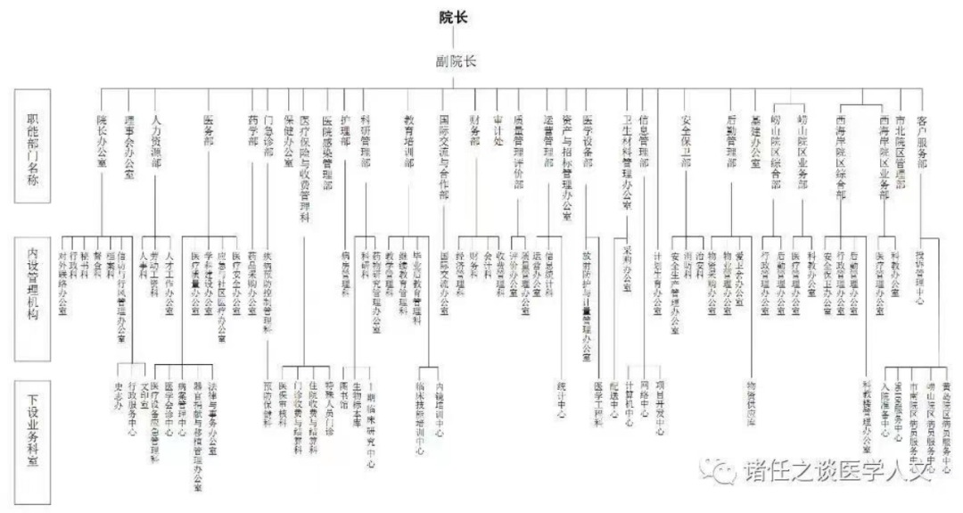 (医院行政部门:截图来源诸任之谈医学人文)
