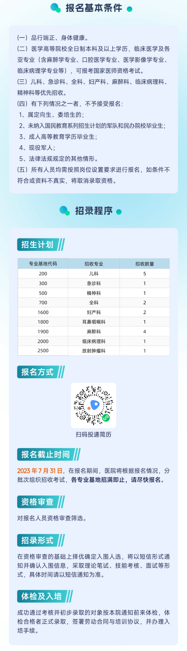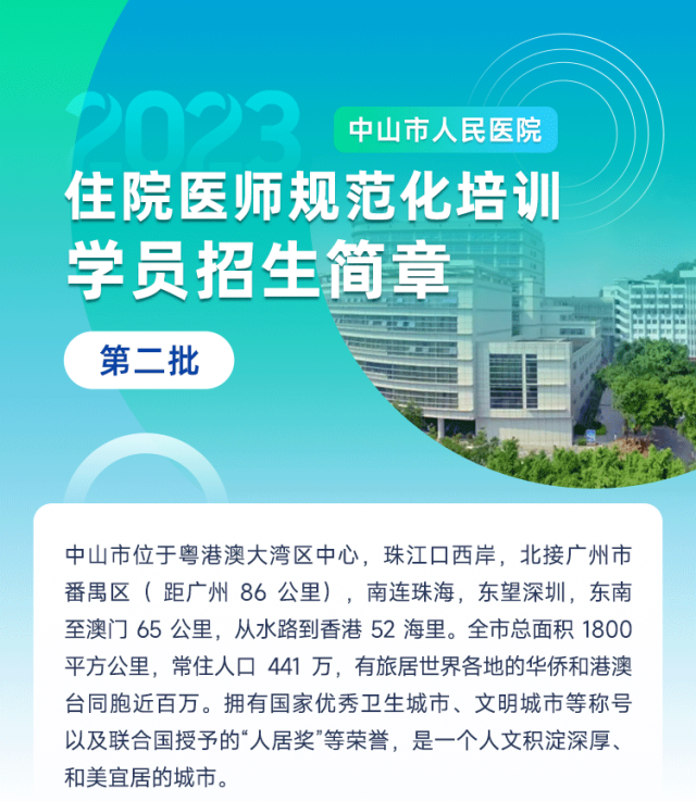 本科起 待遇 7.5~20K/月 | 中山市人民医院住培招生开启日期:2023-06-06 来源:丁香人才公众号 中山市人民医院 邀您加入 应聘 戳视频了解医院规培基地 图片来源:中山市人民医院 微信扫一扫分享资讯上一篇:联勤部队东部地区招聘 150 人下一篇:岗位长期有效 | 深圳市口腔医院邀您共创未来
