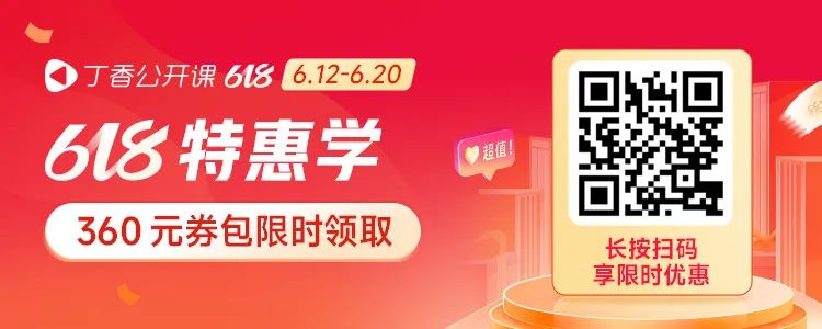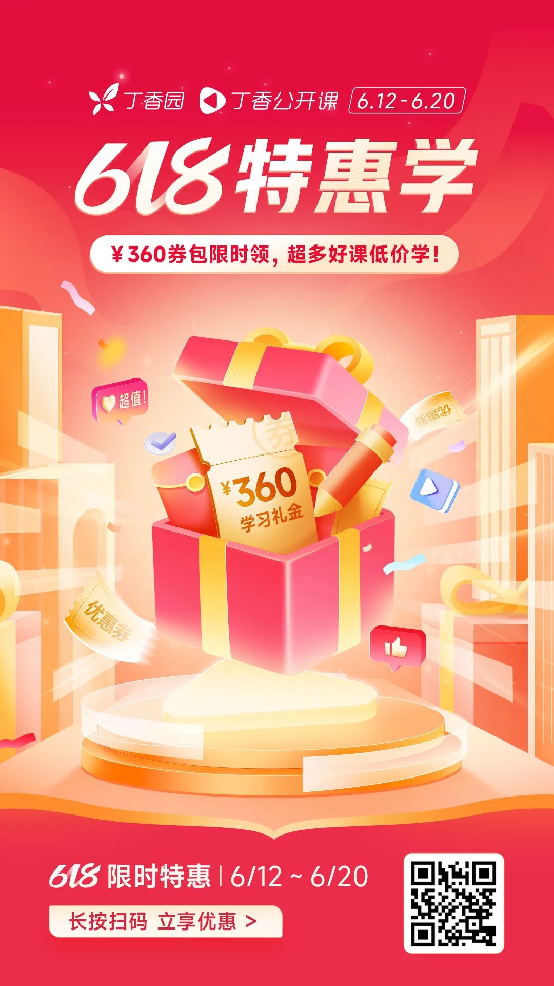 丁香公开课 618 特惠学好课已全面开启!360 元学习礼金限时免费领,低价囤好课