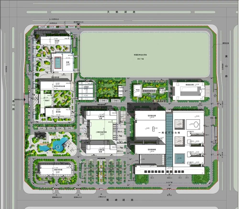 目前,医院二期工程正在建设中,项目包括临床医学院和二期医技综合楼(包含感染楼)。其中临床医学院面积 5.8 万㎡,可容纳 2,000 名师生,预计 2023 年实现招生;二期医技综合楼面积 9.1 万㎡,其中,感染楼面积 0.857 万㎡,预计 2024 年底交付使用。届时,全院建筑面积达到 30 余万㎡,其中医技综合楼 24.2 万㎡(包含感染楼 0.857 万㎡),临床医学院 5.8 万㎡,床位 2,300 张。项目建成后将为培养医疗卫生专业人才提供平台,对阜阳乃至皖北地区医疗卫生、医疗教育事业都将产生辐射带动效应。