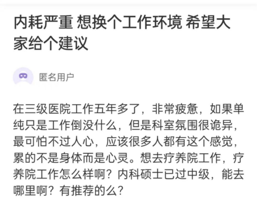 近日,有丁香网友求助,「在三级医院工作五年多,但因为科室氛围诡异,心灵上十分疲惫不堪……」