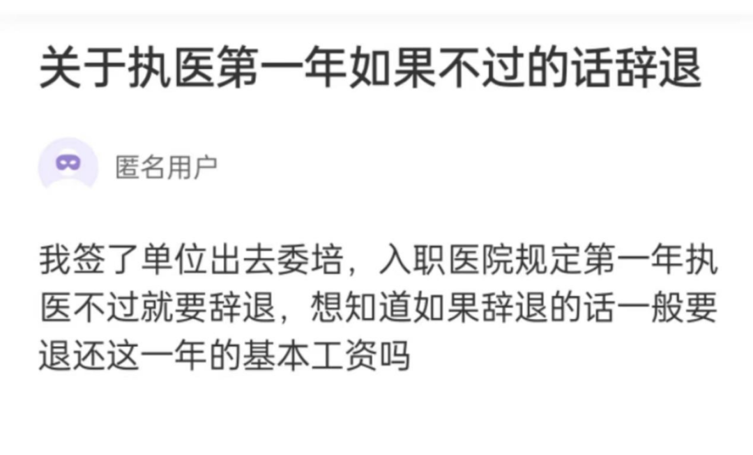 该丁香网友还问道,「如果执医未过,医院辞退的话是否需要退还一年的基本工资?」
