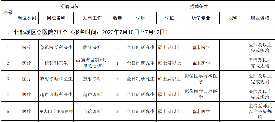 其中,18 家医院共招聘医疗 441 个、药剂 21 个、护理 151 个、医技 34 个,工程 39 个,教练员 2 个,教师 6 个,其他岗位 54 个。