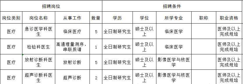 其中医疗、药学、卫生技术类全日制研究生博士或具有高级专业技术资格的应聘对象直接参加专家面试考核。