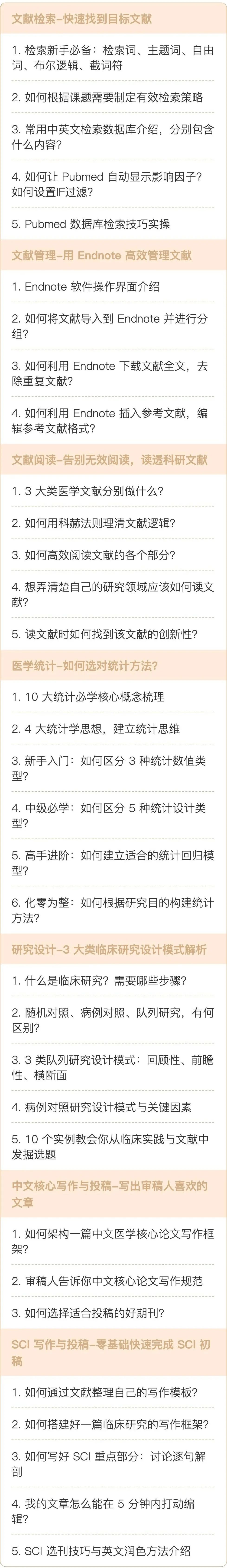 7 日课程 33 个课时 《临床科研 7 日入门集训营》 👇 详见课程大纲 👇