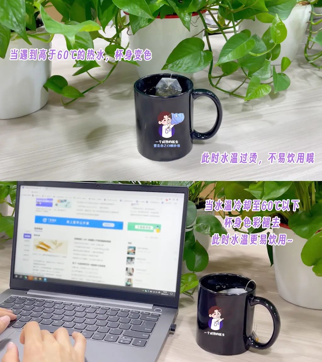 为了方便医生朋友了解水温,本次医生 「补液」杯特别采用了变色技术。