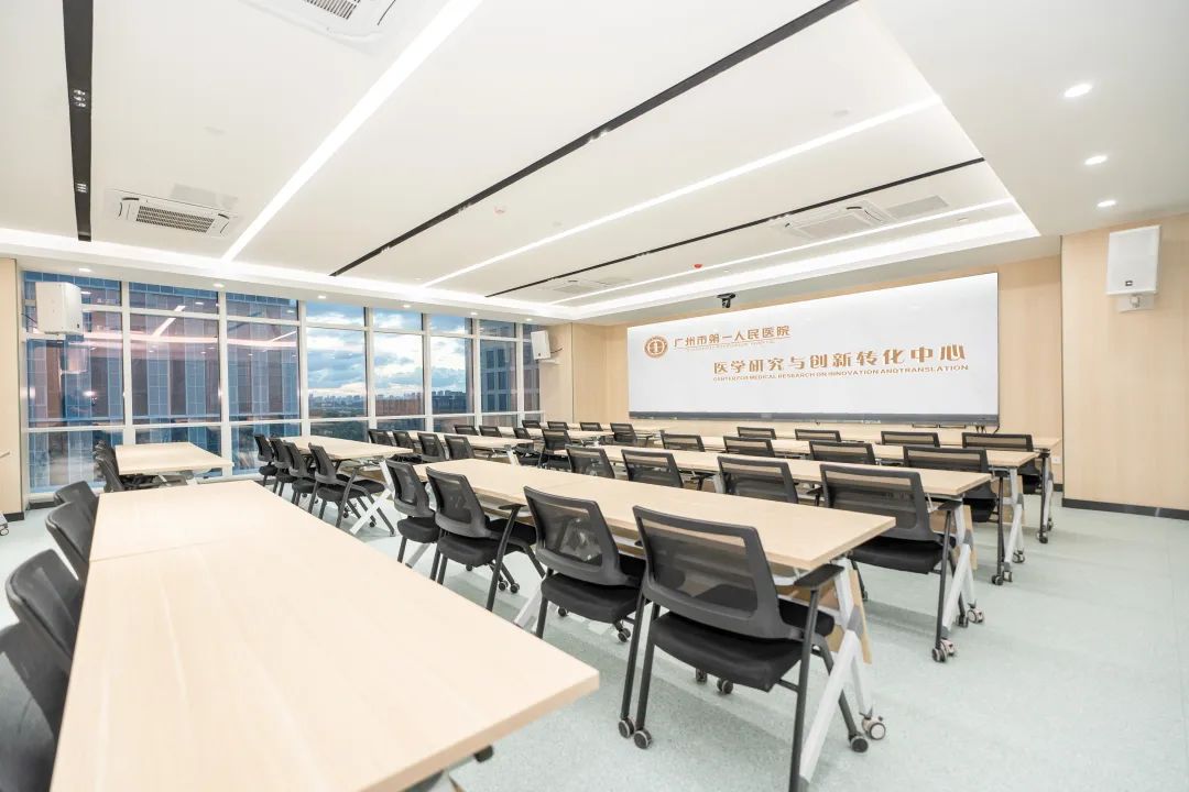 医院按照国际一流实验室建设的医学研究与创新转化中心科研平台于 2022 年正式投入使用。位于广州国际生物岛,一期占地面积 3100 平方米,设立公共基础、细胞培养、光学影像、脑科学、免疫学、纳米科学、病理学和质谱影像等功能平台。共购置 100 多种、300 多台仪器设备,仪器设备耗资逾亿元。其中单价百万元以上设备 19 台,包括超高分辨激光共聚焦显微镜、全自动高通量智能玻片扫描仪、双光子共聚焦活体成像显微镜、超高速分选型流式细胞仪、近红外脑功能成像系统等。