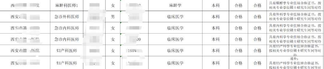 很多医务从业人员认为,这个政策在实际实施的过程中并没有完全扩大到所有科室,招聘主体还是集中在妇科、儿科、急诊科、麻醉科等一些急缺人才的科室,从西安市卫健委此次的招聘名单里就可以初见端倪。