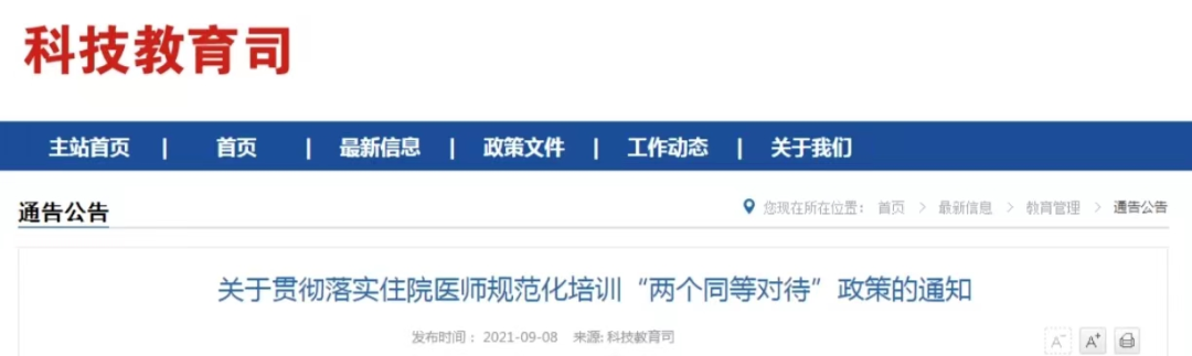 2021 年,「两个同等对待」政策进一步细化。明确指出「 对本科学历住培结业生提供与硕士研究生平等就业机会;在职称申报与评审条件设置、岗位条件设置、和薪酬待遇设定等环节,把本科学历住培结业生与硕士研究生同等对待」。
