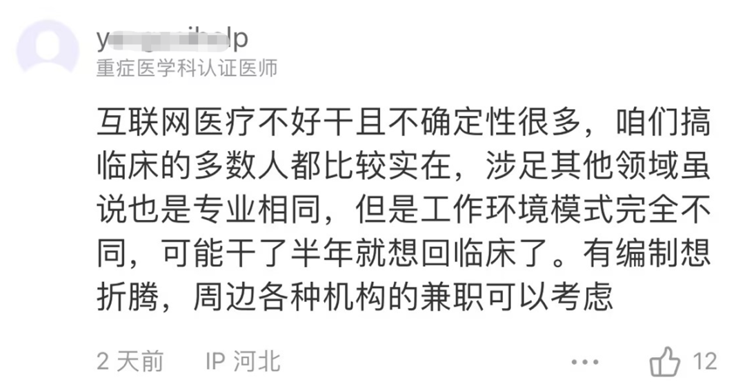 也有站友表示支持离开医院编制,站友 @大***檬:「要是现在我年轻没有家庭负担,我也要出去闯闯,哪里挣钱的去哪里。」