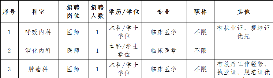 因医院业务发展需要,医院计划招聘工作人员 40 名。现将有关事项公告如下: