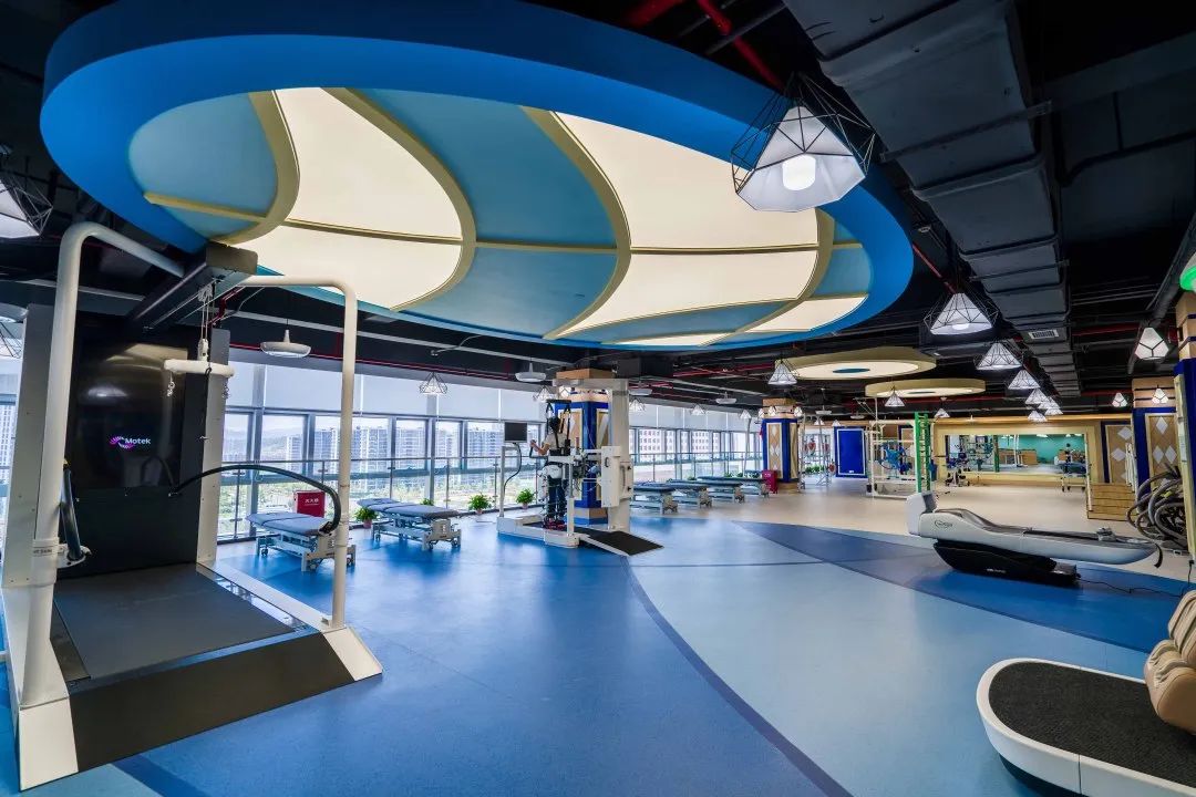 医院康复医学科开设门诊、康复病房已开放床位 200 张、康复评估室、运动康复大厅、物理因子治疗室(光疗磁疗室、低中频电疗室、牵引治疗室、高频电疗室、熏蒸蜡疗室、超声波治疗室、冲击波治疗室)、言语吞咽治疗室、心肺康复治疗室、儿童康复治疗室、作业康复治疗室、传统康复治疗室及康复工程室等多个专业康复室,治疗场地总面积达 2,200 平方米,康复评估、训练设备总价超过 2,000 多万。