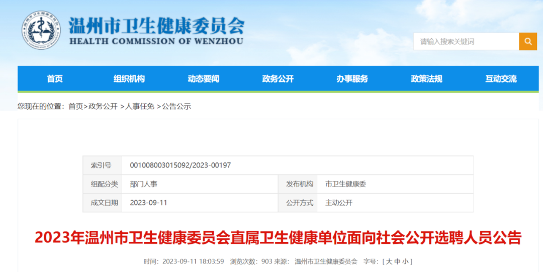 图源:温州市卫生健康委员会卫健委是公务员还是事业单位? 点击查看 2023 各科室薪资水平