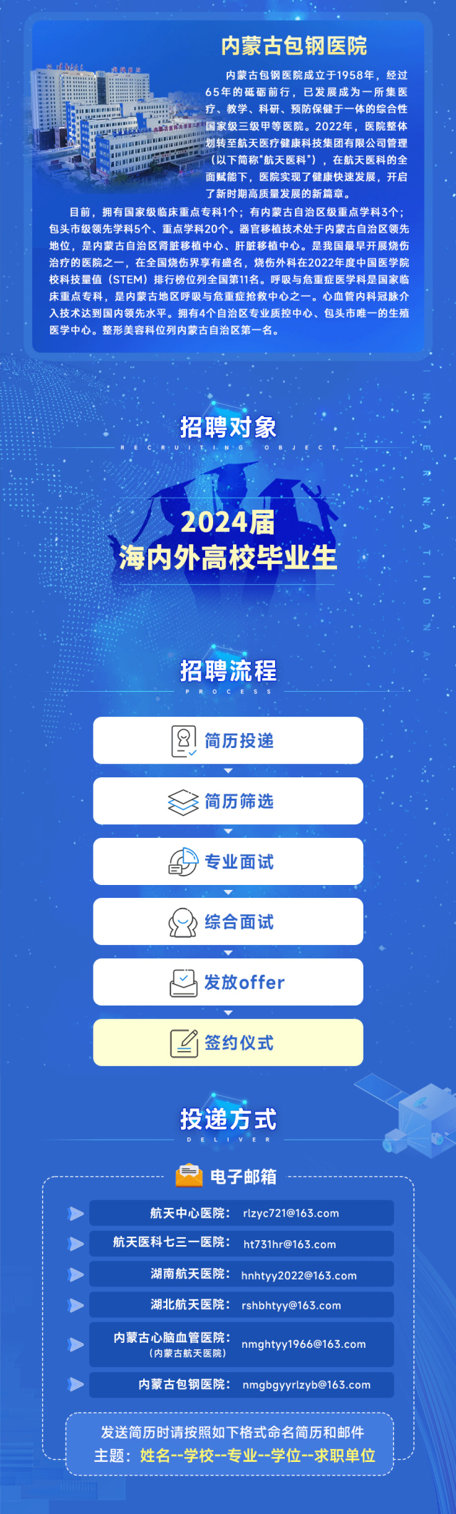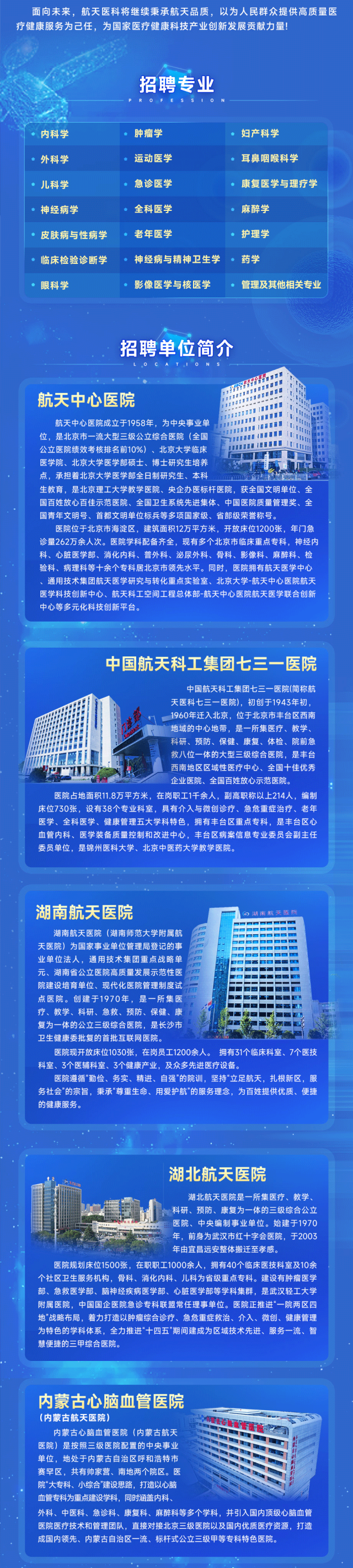 招聘 |「扬帆启航,医向未来」航天医科 2024 年校园招聘正式启动日期:2023-10-19 来源:丁香人才公众号 图片来源:航天医疗健康科技集团有限公司 微信扫一扫分享资讯上一篇:提供住宿 协助落户 | 公立三级综合医院广纳贤才下一篇:复旦百强公立三甲招聘 | 近 200 岗位 事业编制 待遇丰厚