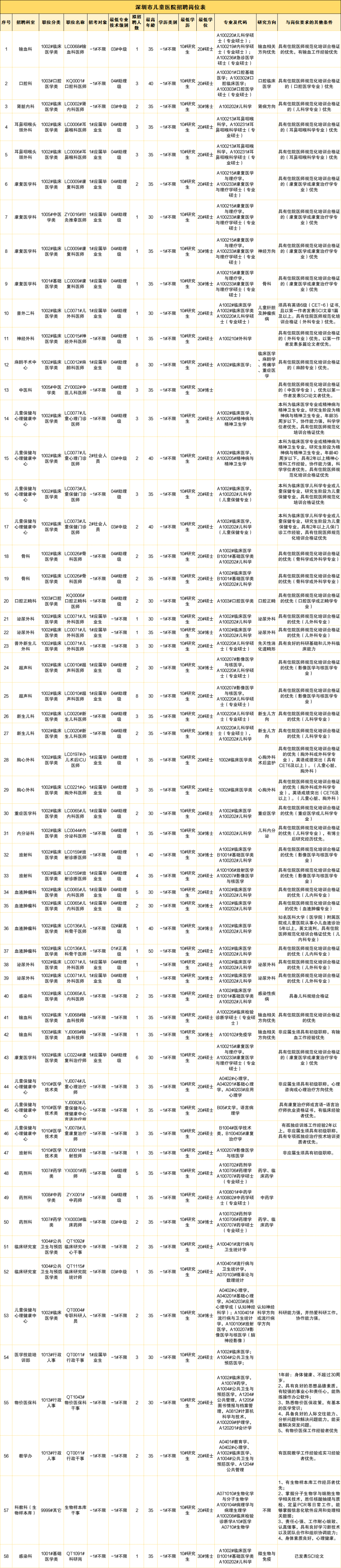 深圳市儿童医院纳贤