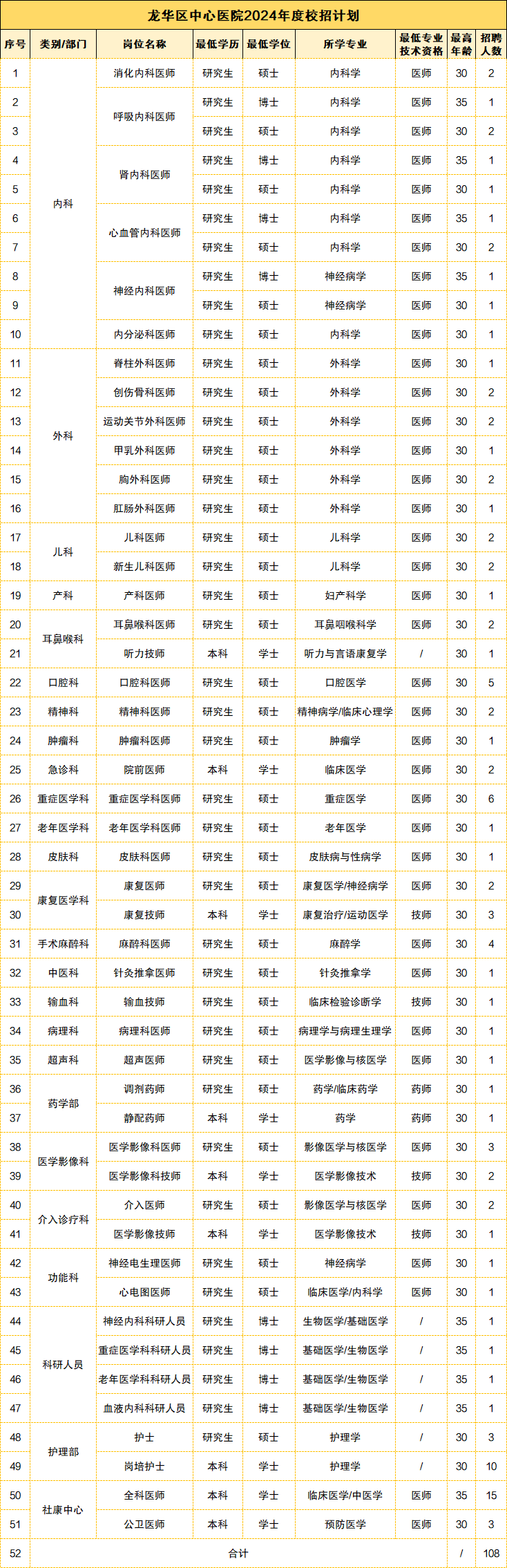 三甲医院招 108 人 | 深圳市龙华区中心医院校招开启