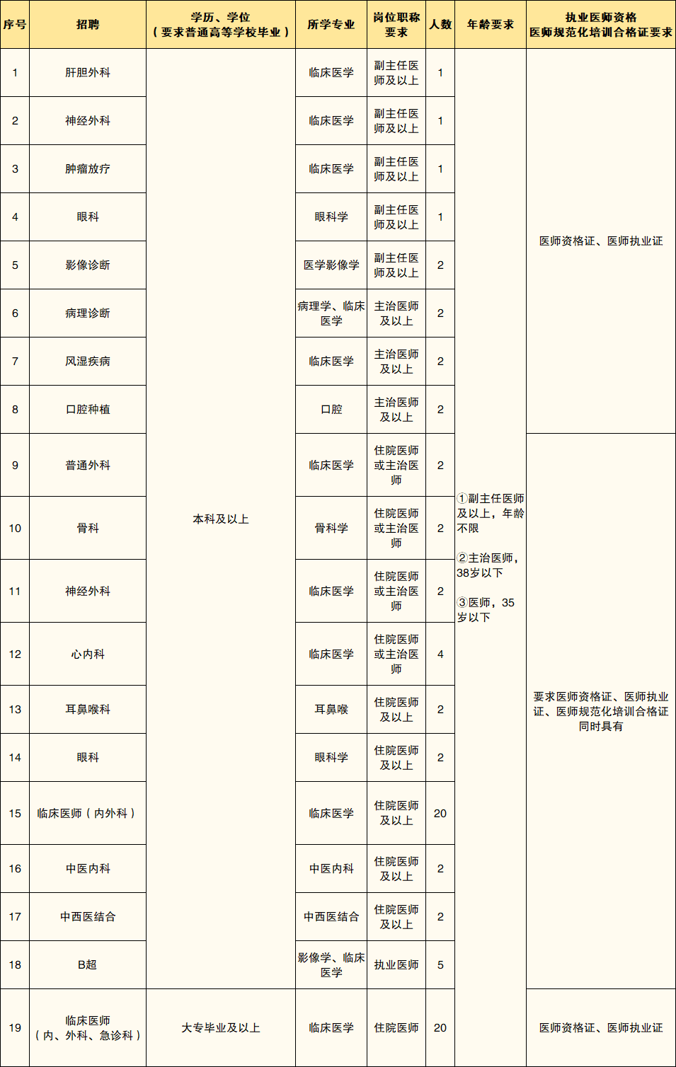临床医疗专业副主任医师以上不作年龄限制,主治医师 38 岁以下, 医师 35 岁以下,梅州户籍优先。