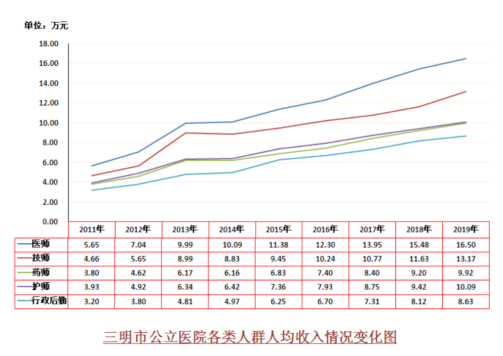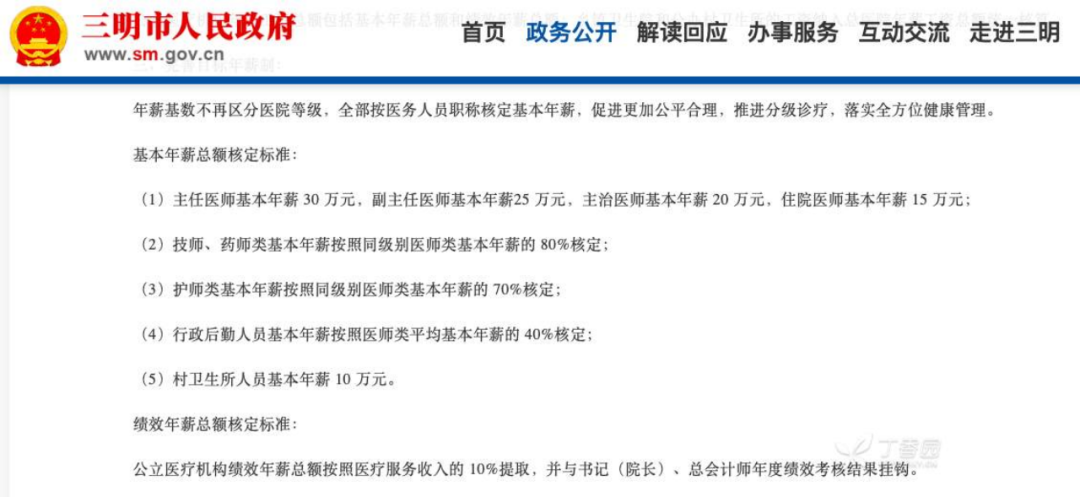 在实行医生、院长年薪制数年后,2021 年初,三明市卫健委还向社会晒出了 2019 年三明市公立医院医生年薪数据,一时间就引起了业界的广泛关注。
