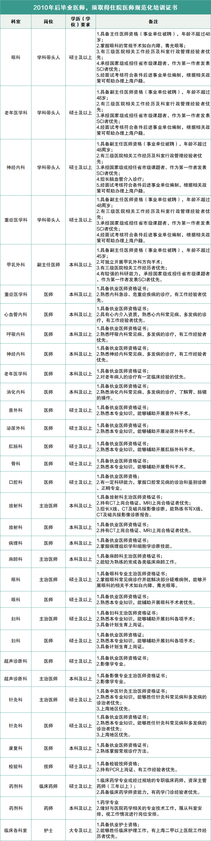医院招聘岗位