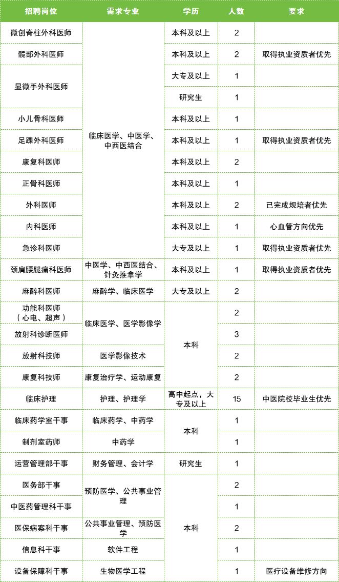 三级中医骨伤医院 招聘开启Recruitment Start 三级 | 医院 | 招聘 | 纳新