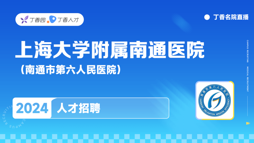 南通市第六人民医院 (上海大学附属南通医院) 是一所集医疗、教学、科研于一体的三级公立医院,规划床位 1,000 张,是全国优质服务示范医院、全国人文关怀示范医院,国家节能示范单位,江苏省文明单位,南通市高质量发展先进集体。教学工作获教育部教学成果二等奖。