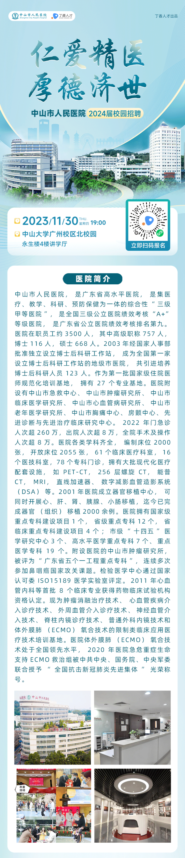 点击 >> 「 中山市人民医院 」, 在丁香人才上查看全部在招岗位 。