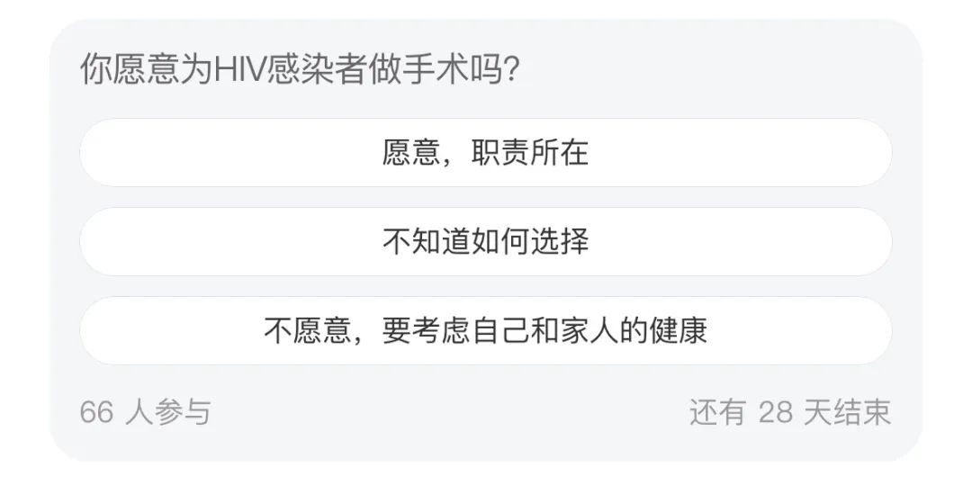 你愿意为 HIV 感染者 做手术吗?楼主 @省人民医院孙传伟 在丁香园社区发起了投票,点击文末「阅读原文」参与投票,看看其他站友的想法。