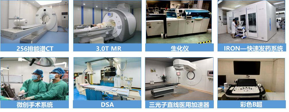 占地面积 9.6 万平方米,建筑面积 13.4 万平方米,环境舒适优雅,基础设施完善。床位编制 1,500 张,年门急诊 130 万人次、出院 5 万人次。配备先进的三光子直线加速器、3.0T 核磁共振、256 排高端 CT、数字血管减影系统(DSA)等先进医疗设备 500 多台(套)。