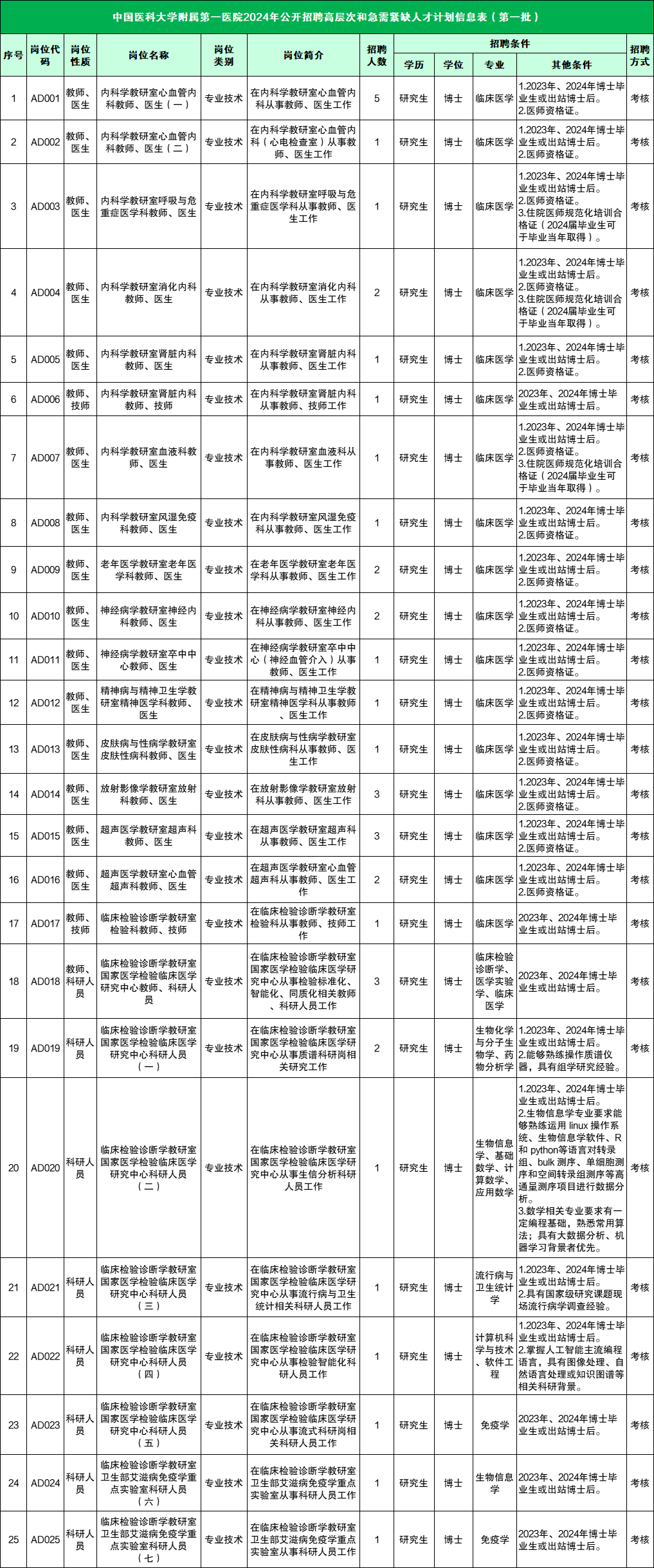 事业编制 | 中国医科大学附属第一医院诚聘医/教/研人才