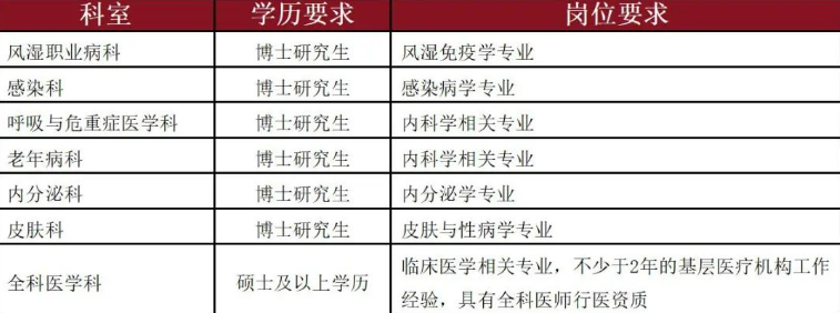 3、应聘临床医师岗位必须完成住院医师规范化培训并取得本市认可的《住院医师规范化培训合格证书》,或于 2010 年以前取得中级职称且最高学历专业需与应聘科室一致。