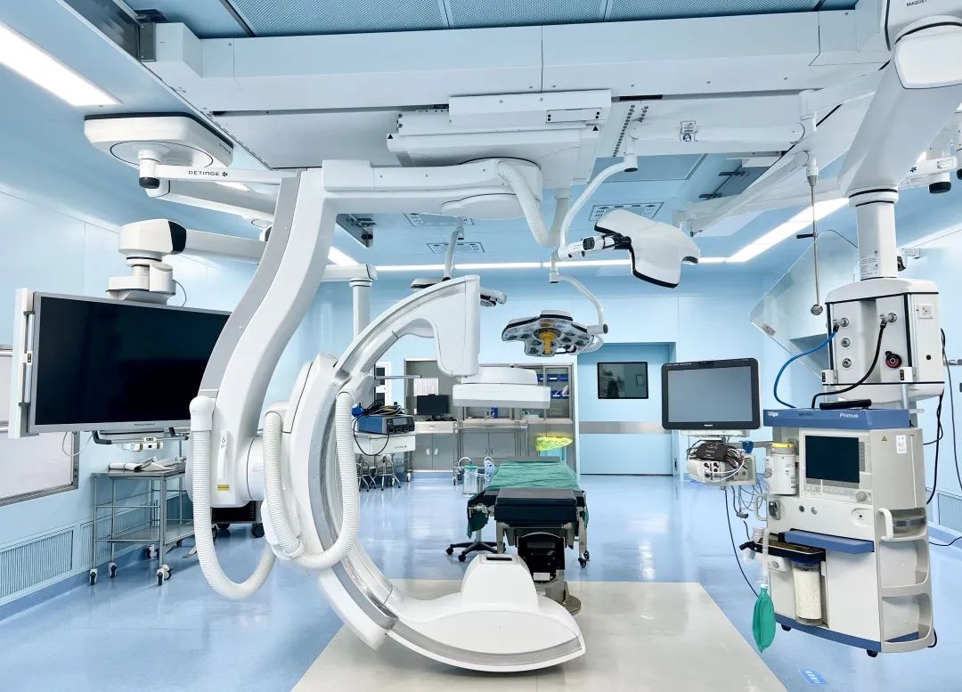 医院选用了联影数字化 PET-CT、飞利浦超高端立体双层探测器光谱 CT、飞利浦高端 3.0T 磁共振、爱尔博海博刀系统、罗氏全自动检验流水线等配置填补了胶州市空白。医科达直线加速器、飞利浦 DSA 数字减影血管造影和杂交手术室、奥林巴斯 3D 腹腔镜、蔡司荧光手术显微镜等均处于国内领先水平,保障重点学科的建设与发展。医院配置了 BIM 管理系统,是省内第一家医院后勤智能化管理系统。