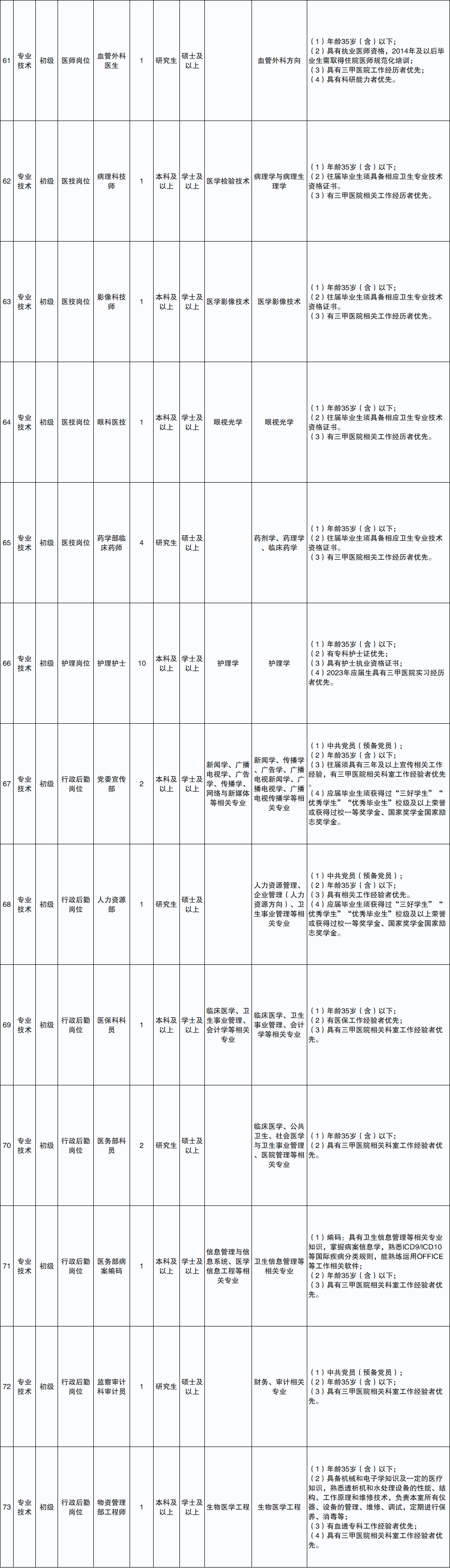 招 120 余人 解决户口 住房补贴 | 大型公立三级医院招聘各层次人才