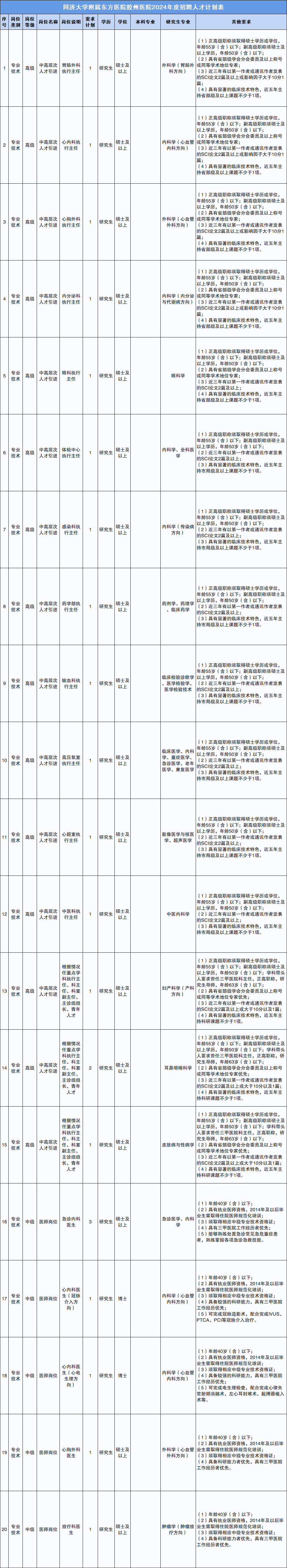 同济大学附属东方医院胶州医院 2024 年度拟面向社会招聘各类优秀人才 120 人: